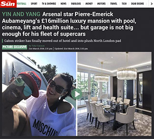 Im März 2018 führte DMS Kühne den Umzug von Deutschland in die luxuriösen englischen Räume durch. Um zwischen den Trainings und Spielen ein perfektes Zuhause vorzufinden, hatte Aubameyang für sich und seine Familie eine geräumige Villa im Londoner Norden gekauft.